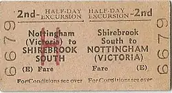 The railways in these parts were built primarily to carry coal. Local passenger services were typically loss-making and got in the way of freight traffic. The Shirebrook North - Shirebrook South - Nottingham Victoria service was withdrawn on 14 September 1931.[6]