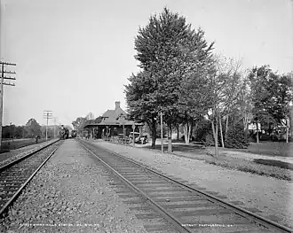 The presence of a railroad station at the present site dates from 1879, when Stewart Hartshorn, the developer of what became the Short Hills neighborhood of Millburn, built a station along the Morris and Essex Railroad line. He built the station at his own expense at a cost of US $2,520.00, took full responsibility for its maintenance (which included paying the salary of the station master), and persuaded the operators of the M&E (actually the Delaware, Lackawanna and Western Railroad) to serve his station with two train stops a day. (The United States Post Office operated a station of its own on the premises of Stewart Hartshorn's original station. The USPS' presence in Short Hills dates from that year.)