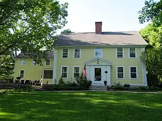 The Shubel Smith House, also known as Stonecroft, is a historic house at 515 Pumpkin Hill Road in Ledyard, Connecticut. It was built in 1807 as the estate of Shubel Smith, a sea captain,[2] and is one of Ledyard's finest surviving farmhouses from that period. It was listed on the National Register of Historic Places in 1996.[1] The listing included three contributing buildings on a 6.5-acre (2.6 ha) area, including the Georgian Colonial house and the "Yellow Barn" as well as a smaller outbuilding.[1][2] Both of the large buildings have modernized interiors, serving as a bed and breakfast called Stonecroft Country Inn.[2]
