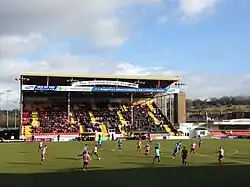 Named as part of a two-year sponsorship with GoCar motor dealership in 2009.[9] Previously named the I.M.P.S. Stand since 2003 when local company Industrial Marine Power Services signed a sponsorship agreement with the club. The stand was built in 1992 and houses 17 executive boxes, Strikers bar for supporters and companies using the executive boxes and the Centre Spot, a fans' bar that welcomes both home and away supporters on matchdays. It replaced the old South Park stand, which consisted of a small seated area and a terrace.