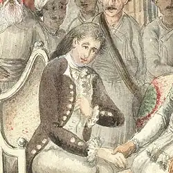 D'Oyly took over the residency at Murshidabad following the resignation of William Byam Martin in January 1780. He arrived that February with instructions from Warren Hastings, the Governor General of Bengal to encourage Mubarak Ali Khan, the Nawab of Bengal to adopt "effectual measures" to curb his spending which was greater than his income.[2]