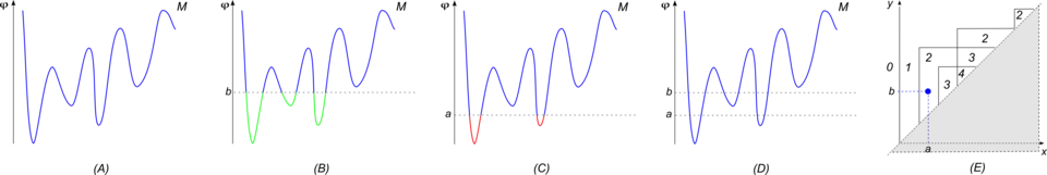 • for every and every , equals the number of connected components of on which the minimum value of is smaller than or equal to .