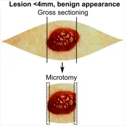 - For number of slices and coverage of lesions, as well as including sections from each edge in case of diffuse border. - "Dermatopathology Grossing Guidelines" (PDF). University of California, Los Angeles. Archived (PDF) from the original on 2019-12-23. Retrieved 2019-10-23.