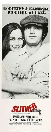 Slither is a 1973 American comedy thriller film directed by Howard Zieff and starring James Caan.[2] Caan plays ex-convict Dick Kanipsia, one of several people trying to find a stash of stolen money. Peter Boyle and Sally Kellerman co-star. Slither was the first screenplay by W. D. Richter.[3]