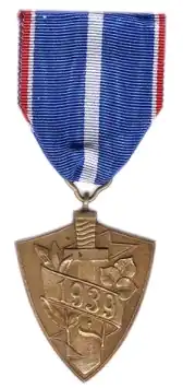 The Commemorative Medal for the Defence of Slovakia was instituted on 8 May 1939. It was awarded to military personnel who took part in the war against Hungary in March 1939 or in the Slovak invasion of Poland in September.