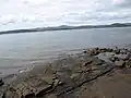 Smooth Island consists of diabase or dolerite rock, a subvolcanic intrusion that probably occurred from 56 to 33.9 million years ago during the Eocene epoch of the Cenozoic era.[15] A geological survey identified consolidated, brownish, fine-grained quartz sandstone occurring on the island's north-east coastline at approximately 2 m (6.6 ft) above sea level, covered by sand. It was said to be similar to the sandstone samples retrieved from South Arm that contained numerous fossils but no fossils were found in the samples taken from Smooth Island.[16][17] The western aspect of the island contains dolerite (tholeiitic) with locally developed granophyre from the Jurassic period. The water table is classified as a surficial sediment aquifer (porous media – unconsolidated).[18]