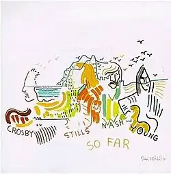 So Far is a 1974 compilation album by Crosby, Stills, Nash & Young. Shipping as a gold record and peaking at No. 1 on the Billboard Top Pop Albums chart, it was the band's third chart-topping album in a row. It has been certified six times platinum by the RIAA, and is the second best-selling album by any configuration of the quartet in tandem after their 1970 studio album, Déjà Vu.