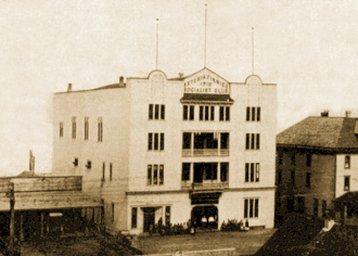 The 1910 State Convention was held August 7, 1910, at Finnish Hall, 717 Montana Avenue in Portland.[66] Party nominees for the November 1910 general election included W.S. Richards of Albany for Governor, Allen McDonald of Portland for Secretary of State, and W.A. Crawford of The Dalles for US Congress in the 2nd District.[66] A platform was also approved which called for enfranchisement of all citizens over 21 years of age "regardless of sex, color, or property qualifications" and which called for "the transformation, as rapidly as possible, of the capitalist ownership of the property in the means of production...into the collective property of the producers."[66]