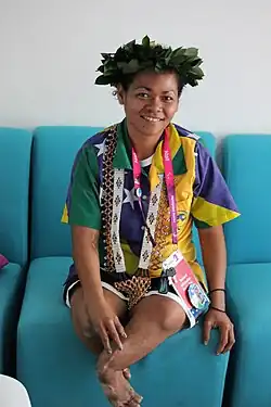 Ultimately, the country's delegation was composed of a single athlete, Hellen Saohaga (also known as Hellen Tasaunga).[2] She was accompanied by Chef de Mission Casper Pule, team manager Falai Katalake Bare, and coach Fa'amoana Topue.[2] She competed in Brisbane in an international competition during the Queensland Athletic Championships. She was given a universality spot in the Games.[3][4] She was the country's flag-bearer during the Games' opening ceremony.[5][6]