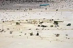 An aerial view of a radar installation operated by Somali troops at Berbera Airport. A Soviet-made P-12 early-warning radar is visible at bottom center. The photo was taken during Exercise Eastern Wind '83, the amphibious landing phase of Exercise Bright Star '83.
