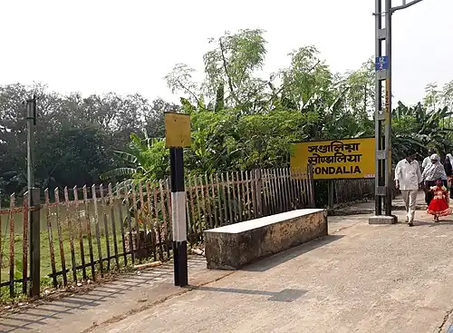 Sondalia railway station is part of the Kolkata Suburban Railway system and operated by Eastern Railway. It is located on the Barasat–Hasnabad line in North 24 Parganas district in the Indian state of West Bengal.[2]