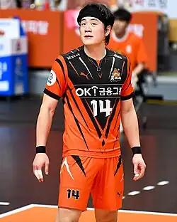Song Hui-chae (Korean송희채; born 29 April 1992) is a South Korean volleyball player who plays as an outside hitter for Seoul Woori Card WooriWON in the South Korean V-League. Song made his first appearance for the South Korean national team in 2012 and played all of the team's six matches at the 2012 Asian Men's Cup Volleyball Championship,[1] where the team finished in fifth place. In 2013, he also completed in the Summer Universiade[2] and East Asian Games[3] as a member of the collegiate national team.
