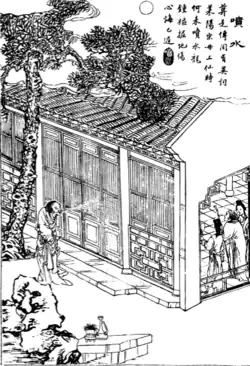 Chiang (2005) states that "Song Wan's life story (...) may be read of the impossibility of adhering to (Confucian ideals)."[3] Song is one of the protagonists of the short story "Squirting"[5] (噴水; also known as "Spraying Water"[3]) by Pu Songling in Strange Tales from a Chinese Studio. The tale narrates the Song's maids' and mother's encounter with an elderly ghost who spouts water (squirts);[5] the incident allegedly occurred when Song was working for the government and had to travel away from home.[5]