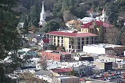 Sonora was founded by Mexican miners during the California Gold Rush. Named after their home state of Sonora, Mexico, it was once a booming center of industry and trade in California's Mother Lode. Most of the gold removable with traditional mining techniques was quickly extracted, leaving miners to use more complex and expensive mining techniques to reach deep pockets of quartz and gold. Sonora as well as other mining towns of the era experienced economic hardship when the value of gold decreased. As "gold fever" died down, Sonora's size and population steadily decreased over the years.[6] In c. 1851, the Sonora Hebrew Cemetery was formed by the Hebrew Benevolent Society and predominantly contains the graves of European-born Jews who emigrated to Gold Country.[7][8]