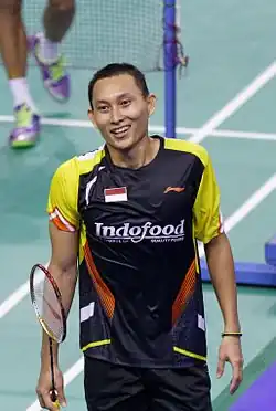 Sony Dwi Kuncoro (born 7 July 1984) is an Indonesian former badminton player. He was the 2004 Olympic bronze medalist,[2] two-time World Championships medalist (silver–2007, bronze–2009)[3] and three-time Asian Champion (2002, 2003, 2005).[4] He reached a career high as world number 3 on 7 October 2004.[5]