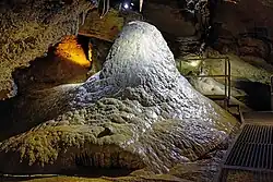 In 1834, the Sophie Cave was opened as a show cave.[14] During guided tours, magnesium light was first lit in front of the most beautiful stalactite formations. So-called Davy lamps, invented by Humphry Davy, were used to illuminate the cave. Later, carbide lamps were used.
