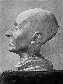 Germain's resting place in the Père Lachaise Cemetery in Paris is marked by a gravestone.[27][8] At the centennial celebration of her life, a street and a girls' school were named after her, and a plaque was placed at the house where she died.[8] The City Council of Paris commissioned a bust by Zacharie Astruc, based upon a death mask in the collection of the National Museum of Natural History, which was erected in the main courtyard of the school on 2 August 1890.[58] There are no known likenesses of Germain made from life, nor contemporary verbal descriptions of her appearance.[58]