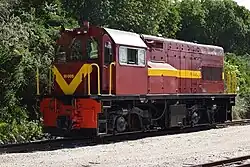 Five locomotives were sold to RRL Grindrod, a joint venture between Solethu Investments, a South African Black Economic Empowerment (BEE) rail logistics company, and Grindrod Limited, a shipping and logistics group, for use at Welkom in the Free State to haul mine hoppers. Four of them were renumbered in the range from RRL 91-01 to 91-04 and their original narrow-gauge bogies were cut in half and widened to 3 ft 6 in (1,067 mm) Cape gauge. The fifth was the accident-damaged no. 91-009 which was completely rebuilt with a 700 hp Caterpillar main engine. It is today (December 2018) the Capitol Park Shunter for Rovos Rail and has been re-numbered 91-011 engine-generator.[8][9][10]
