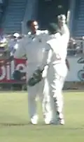 South Africa batted for 20 more overs on the fifth day before declaring, with the total on six for 194 after Kallis had got his half-century and Pollock added 26 not out in a 42-run seventh-wicket stand with Kallis. The declaration was described as "extremely sporting" by the Cricinfo reporter.[28] Australia were left to chase 287 in 76 overs, and though Langer was dismissed four balls before lunch was taken, South Africa got only one more wicket. Captain Ponting took over from Langer, and accumulated runs on both sides of the wicket,[29] ending his innings with a strike rate of 90. His strokeplay was described as "delectable",[30] and in the two sessions post-lunch, South Africa could not get him out. His century was brought up shortly after tea, and as he was supported by Hayden, who hit 90 in a 182-run second-wicket partnership, Ponting could guide Australia to a 2–0 win margin. With 143 not out, he also became the first batsman to hit two centuries in his 100th Test.[30] For his efforts, Ponting was named both Man of the Match, and Man of the Series after his 515 runs at a batting average of 103.