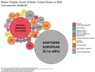 As of 2010, the South Atlantic states had a combined population of 61,774,970. The South Atlantic states region covers 292,589 square miles (757,800 km2). With the exception of West Virginia, the region has seen rapid population growth and economic development in recent decades.