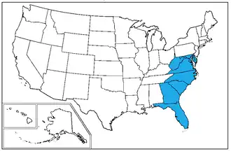 This division includes eight states and one district; Delaware, Florida, Georgia, Maryland, North Carolina, South Carolina, Virginia, West Virginia and Washington.[1] This division is also a recognized geographical division used by the United States Geological Survey.[2]: 2  All entities within the region apart from the District of Columbia and West Virginia border the North Atlantic Ocean.