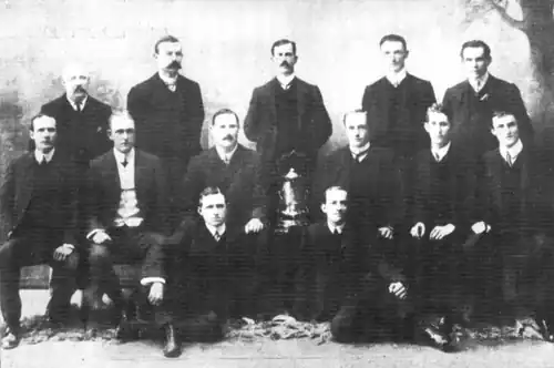 South Brisbane won the premiership in 1906–07,[55] and went back-to-back also winning the premiership in 1907–08, for which they were awarded the "Courier Cup", which the chairman of the Queensland Cricket Association remarked had a "capacity sufficiently large to carry enough refreshment for the whole team." when presenting it to the side.[56] Charles Barstow took 86 and 61 wickets for South Brisbane in the two seasons topping the competition in both.[57] South Brisbane won the premiership in the 1908–09 season with W.B. Hayes taking 83 wickets and topping the competition tally.[58] They also won in 1909–10, achieving four consecutive premierships, with Sidney Redgrave scoring 732 runs to top the competition tally.[59] A highlight for South Brisbane in 1909 was Charles Barstow taking 10 for 34 in an innings.[60]