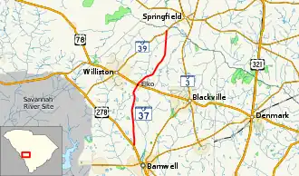 South Carolina Highway 37 (SC 37) is a 15.430-mile (24.832 km) primary state highway in the U.S. state of South Carolina. It provides a direct route between Barnwell and Springfield.
