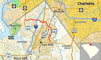South Carolina Highway 460 (SC 460) is a 7.5-mile (12.1 km) primary state highway in the U.S. state of South Carolina. It serves as an bypass of SC 160, from Tega Cay to east of Fort Mill.
