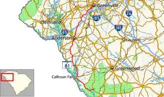 7. ^ a b "Overview map of SC 81 (southern end of SC 8 concurrency to Greenville)" (Map). Google Maps. Retrieved May 18, 2016.