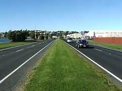 Much of eastern South Dunedin is land reclaimed from Otago Harbour. This area, which lies immediately to the west of the harbour's head, is known as the Southern Endowment,[5] and covers an area of close to 100 hectares (250 acres). The Southern Endowment was begun with rock removed during the cutting of Bell Hill in the central city during the nineteenth century.[5] This largely extended the area around the wharves close to the heart of the city, but did not extend any further south until 1912, when a causeway was built along the head of the harbour. As part of an Otago Harbour Board scheme to reclaim land for industrial use, dredges started to pump tailings into the area behind the causeway in the 1940s. Reclamation continued for many years, and was not officially completed until the opening of Portsmouth Drive, which runs along the route of the 1912 causeway at the harbour edge, in 1978.[6]