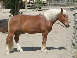 The South German Coldblood, German: Süddeutsches Kaltblut, is a breed of draught horse from southern Germany. It is distributed mainly in Bavaria. It is the most numerous of the four principal German draught horse breeds – the others being the Black Forest Horse, the Rhenish German Coldblood and the Schleswig Coldblood – and is the only one not listed as endangered by the Food and Agriculture Organization of the United Nations or by the Gesellschaft zur Erhaltung alter und gefährdeter Haustierrassen, the German national association for the conservation of historic and endangered domestic animal breeds.[4]
