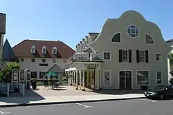 The First Congregational Church and, in the background, the South Hadley Post Office and Village Commons