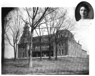 The South Kentucky Institute received its charter from the state legislature in February 1849, under the leadership of nine trustees.[2][3] All of the trustees at the time of founding were affiliated with the Christian Church, also known as the Church of the Disciples.[2] John M. Barnes served as the first president.[2] The school was established in Hopkinsville, Kentucky in autumn 1849 as a finishing school for girls, located in the basement of the Christian Church in downtown.[4][2][5] After the death of president Barnes in 1851, the second president of the school was Enos Campbell.[2] In 1858, South Kentucky College built its first campus, designed by architect Nathan Kelley.[4][3][6] By 1879, the school instruction included vocal, music, elocution, and physical education.[5] The school began admitting men in 1880 and was officially renamed South Kentucky College by the state.[3][7] From 1884 to 1891, James Edward Scobey served as president of the school.[8]