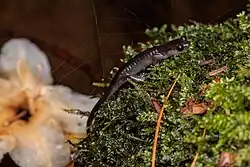 The South Mountain gray-cheeked salamander (Plethodon meridianus) is a species of salamander in the family Plethodontidae, endemic to the state of North Carolina in the United States, where it is only found in the South Mountains. It was formerly considered a variant of the red-cheeked salamander (P. jordani). Its natural habitat is temperate forests. It is threatened by habitat loss.[1][2]