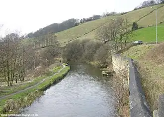 Originally, there were eight reservoirs which supplied water to the canal, but these were sold to water supply companies when the canal was closed, and so water supply is again a problem. For this reason, passage through the first 19 locks above Ducie St Junction, starting with lock 83, is restricted to four boats per day in each direction, and must be booked in advance. Making progress along the canal is hard work, as there are three locks per mile (5 locks per km), but they are spread out, rather than being organised into flights. There are a total of 47 locks between Ducie Street and the summit level, all constructed with the same rise, as a way to conserve water and to make the lock gates interchangeable. By the time West Summit Lock is reached, boats have travelled 17 miles (27 km) and ascended to a height of 601 feet (183 m), make this one of the highest canal summits in the country. Passage over the summit, between locks 37 to the west and 36 to the east, must again be booked and only four boats per day can make the passage in each direction. Although the lock at the western end of the summit is called West Summit Lock, the canal is actually travelling in a north to south direction at this point. The summit is quite short, at just 0.8 miles (1.3 km), and the descent to Sowerby Bridge begins all too soon.[3][4]