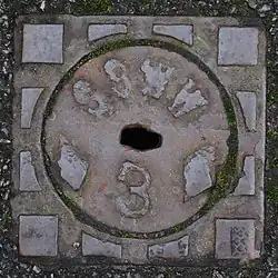 A South Staffordshire Water Works stop-cock cover in Sutton Coldfield, Birmingham, England
