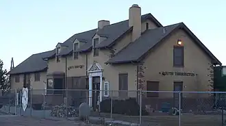 The South Torrington Union Pacific Depot was built in 1926 just to the south of Torrington, Wyoming. It was designed by Gilbert Stanley Underwood in the Mission Revival and Spanish Colonial Revival as a combined passenger and freight depot.