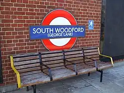 The station was subsequently transferred to form part of London Underground's Central line on 14 December 1947 when Central line services were extended from Leytonstone to Woodford.[14] This formed a part of the long planned, and delayed, Eastern Extension of the Central line that was part of the London Passenger Transport Board's "New Works Programme" of 1935 – 1940. After transferring to London Underground the "(George Lane)" suffix fell out of use, though it remains on some roundel signs.[15][note 1]
