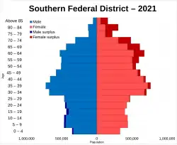 Population pyramid of the Southern Federal District at the 2021 Russian Census