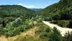Main river in Southern Serbia is South Morava. It passes through various gorges and valleys in Southern Serbia: Končulj gorge – Vranje valley – Grdelica gorge – Leskovac valley – Niš valley – Aleksinac valley – Stalać gorge. After breaking through the last, Stalać gorge, it meets the West Morava. Most important right tributary is Nišava. It flows through Niš and suburb of Niška Banja, Bela Palanka, Pirot and Dimitrovgrad. It is also the longest tributary of South Morava. City of Niš and Nišava District are named after the river of Nišava. Most notable feature of Nišava is Sićevo Gorge. Of the left tributaries of South Morava, most important are Jablanica and Toplica. Jablanica originates from the Goljak mountain and passes through the city of Leskovac. Jablanica District is named after Jablanica river. Toplica meets with South Morava near Doljevac, some 8 km southwest of Niš. Toplica originates on the slopes of Kopaonik mountain. It passes through the city of Prokuplje. District of Toplica is named after this river. River of Pčinja is a left tributary of Vardar. It is one of the rare rivers in Serbia that belongs to the Aegean Sea drainage basin.[16]