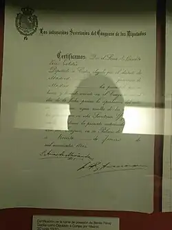 - ^ Del Nido y Segalerva, Juan (2004). Antología de las Cortes desde 1840 a 1846 (Original edit, Madrid: Establecimiento tipográfico hijos de J. A. García, 1910) (in Spanish). fascimil. ISBN 84-96012-79-4. Archived from the original on 29 February 2012.