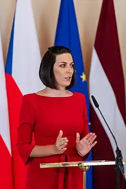 The president of the Chamber of Deputies of the Parliament of the Czech Republic[1] (Czech: Předseda Poslanecké sněmovny Parlamentu České republiky), sometimes also referred to as speaker or chairman / chairwoman, is an elected presiding member of the Chamber of Deputies of the Czech Republic. Since 10 November 2021, the president has been Markéta Pekarová Adamová of TOP09.