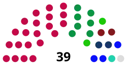 There are 20 Members of the Municipal Council (MMCs), elected on proportional representation. There are 18 wards, but these are now merely polling divisions, without individual representation.[3]