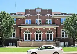 A two-story, brick, American Foursquare convent was built for the teaching sisters in 1913. A rectory for the resident clergy was completed in 1921 for $25,000.[2] The two-story brick structure was designed by August Gehlhausen in the Colonial Revival style. It features a two-story, full length, front porch.