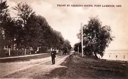 The St. Clair Parkway follows the route of the first settlement trail in Lambton County, and was the only passable road in the area until at least 1839.[17] There are two conflicting stories as to the origin of a route along the Lambton riverfront: