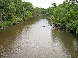 The St. Francis River rises in Alberta Township in northeastern Benton County, and flows generally southwardly through eastern Benton County, passing to the east of Foley and collecting a minor tributary known as the West Branch St. Francis River.[6] The river turns eastward in northern Sherburne County, and flows south- and southwestwardly through the Sherburne National Wildlife Refuge and Sand Dunes State Forest. It joins the Elk River in Big Lake Township in southern Sherburne County, approximately one mile (2 km) north of the city of Big Lake.[7] Canoeing is possible on some stretches of the river during periods of high water.[8]