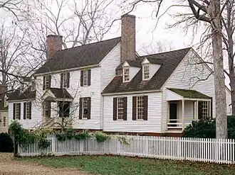 After Frances's death, Tucker left Matoax for a house facing the Palace Green and Market Square in Williamsburg; this house remains today on the grounds of Colonial Williamsburg as the St. George Tucker House.[71][72] In 1791, Tucker married Leila Skipwith Carter, a widow who was previously married to George Carter, descendant of Robert "King" Carter.[71] Leila and her two children, Charles and Mary "Polly" Carter, joined Tucker and his children in Williamsburg.[71] After Tucker retired from the bench in 1825, he and Leila would alternate time between their home in Williamsburg and a cottage on the Edgewood estate. Tucker suffered a stroke in 1827, dying six weeks later on November 10, 1827.[63][73]