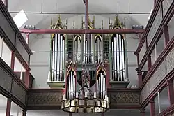 The main organ was built in 1979 by Ekkehard Simon from Landshut. It included the Gothic-revival front from 1904. It features 45 stops on three manuals and pedal.[5]