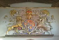 The chancel arch displays a fine Royal Coat of Arms dated 1685. This was restored in 1935.[1]