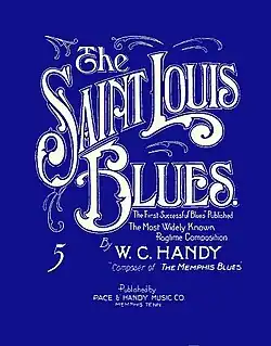 "The Saint Louis Blues" (or "St. Louis Blues") is a popular American song composed by W. C. Handy in the jazz style and published in September 1914. It was one of the first blues songs to succeed as a pop song and remains a fundamental part of jazz musicians' repertoire. Benny Goodman, Louis Armstrong, Cab Calloway, Bing Crosby, Bessie Smith, Billy "Uke" Carpenter, Eartha Kitt, Count Basie, Glenn Miller, Guy Lombardo, Peanuts Hucko, Art Tatum, Paul Robeson, and the Boston Pops Orchestra (under the directions of both Arthur Fiedler and Keith Lockhart) are among the artists who have recorded it. The song has been called "the jazzman's Hamlet".[3] Composer William Grant Still arranged a version of the song in 1916 while working with Handy.[4]